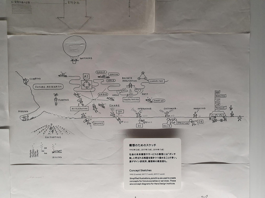 デザイン業界と関係ない人でもその名前を知っているであろう、原研哉氏。日本デザインセンターの代表取締役で、日本を代表するデザイナーである原氏の草稿も展示されています。