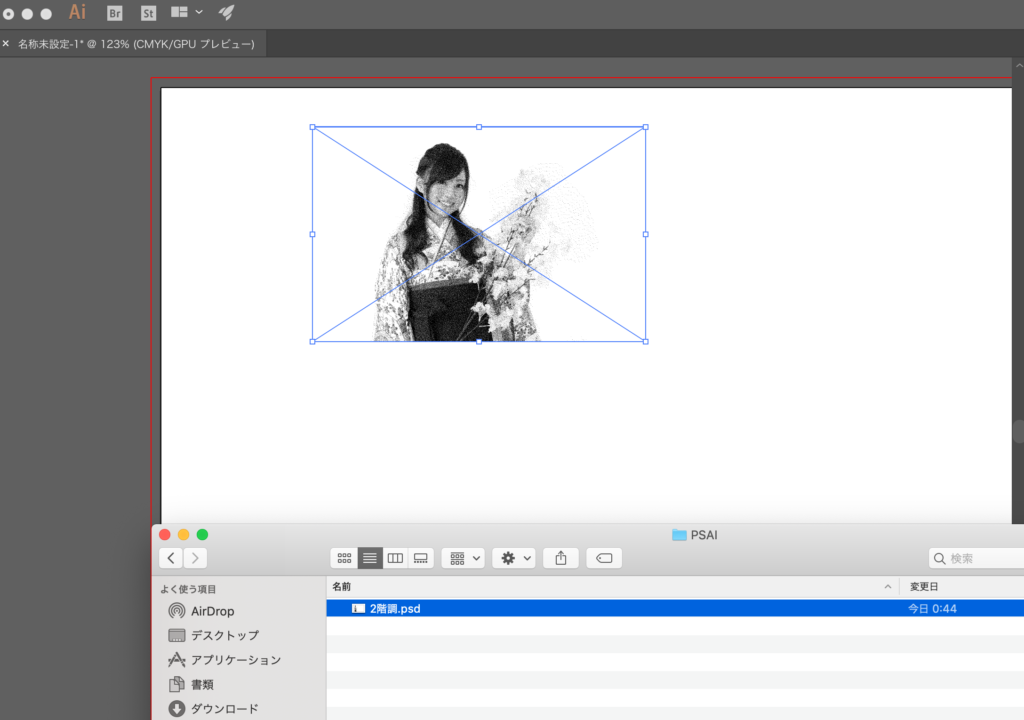先ほど用意したPsdデータをイラレの新規ドキュメントにドラッグ&ドロップします。