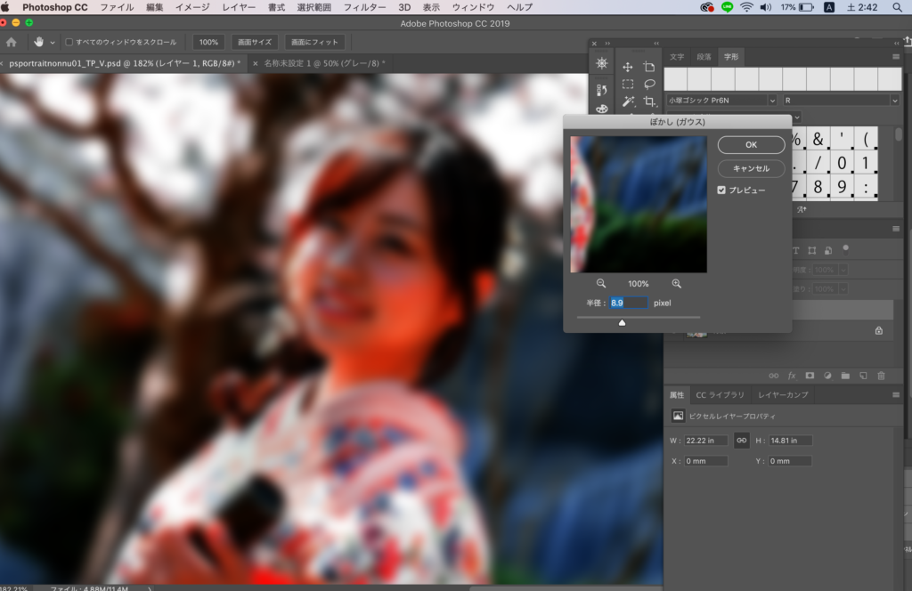 ガウスの数値は半径 8.9にしました。