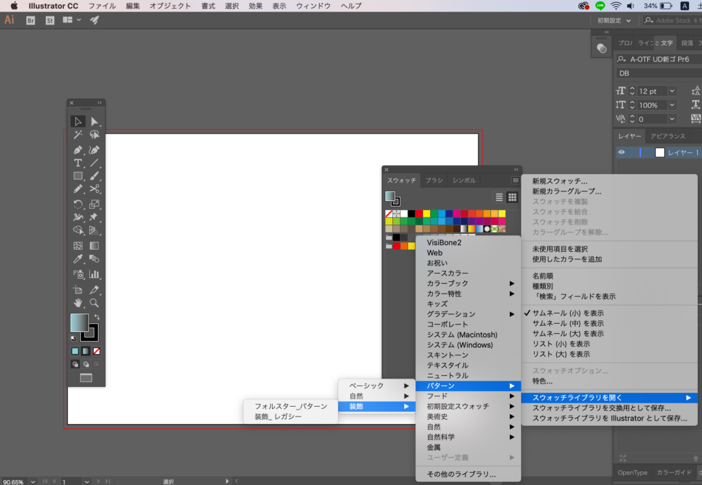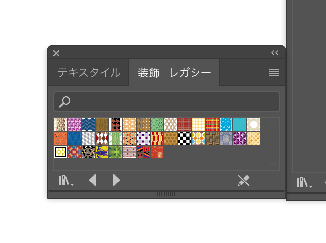 スウォッチパネルの右上をクリック。『スウォッチライブラリを開く → パターン → 装飾 → 装飾_レガシー』を開きます。