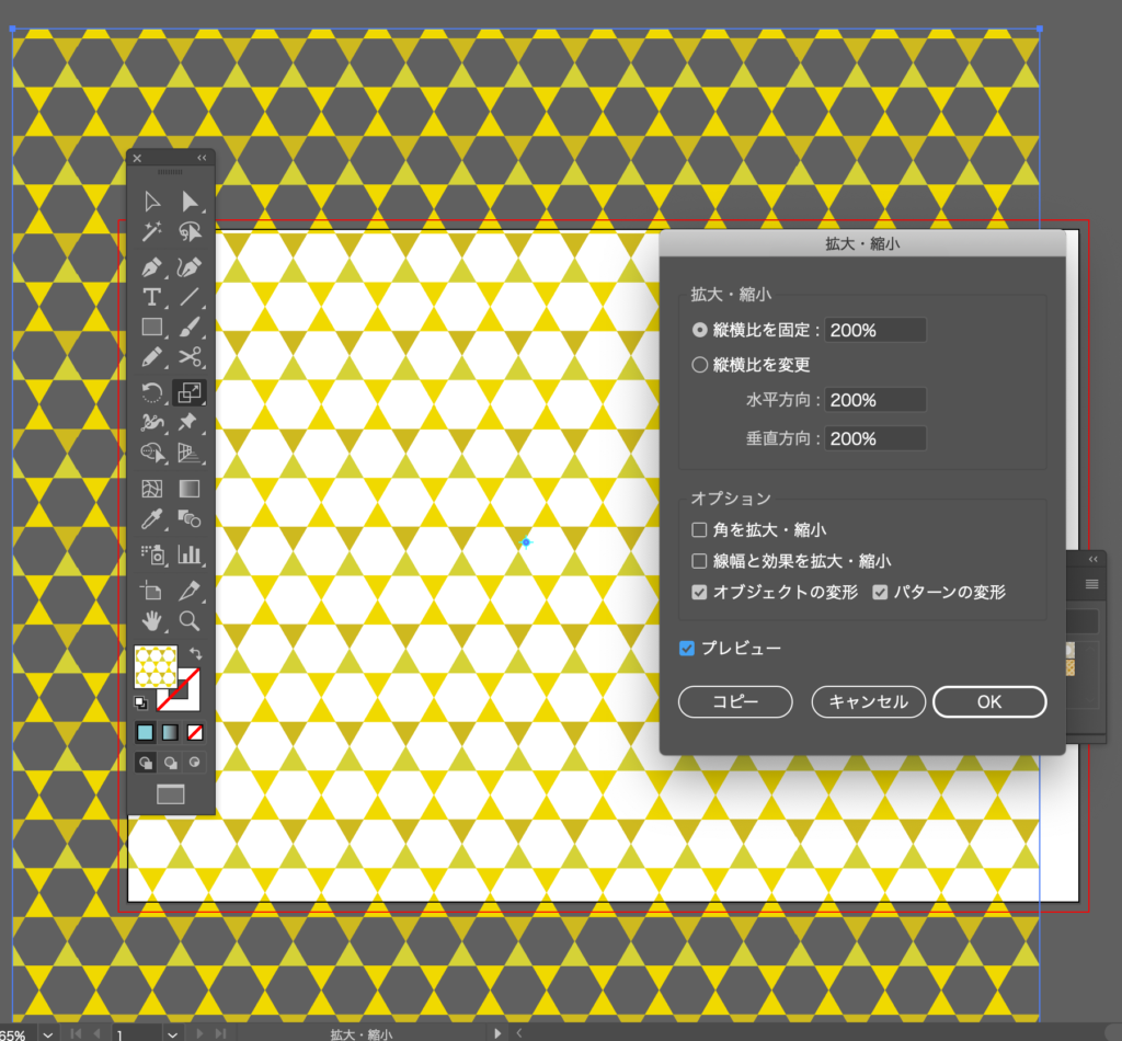 パターンを選択した状態で、拡大縮小をダブルクリックします。