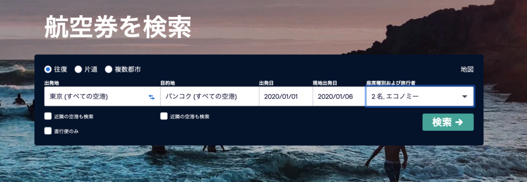 これで簡単に行き帰りの安いフライトを組み合わせやすく、かつ手軽に予約することができる。