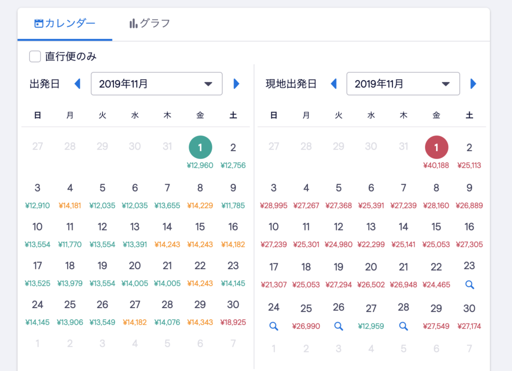 これは、出国日と帰国日をピンポイントで指定する必要はなく、月のなかでで一番安いフライトを簡単に検索できる機能だ。