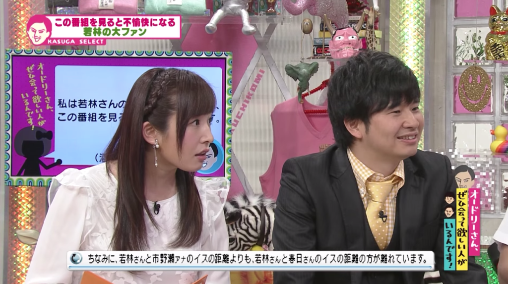 思っていることがすぐに表情に出る市野瀬アナウンサー…素敵。若林に「いやいや、顔に出過ぎだから…!」と注意される場面も多々あるのだが、アナウンサーらしくないところがまた良い笑