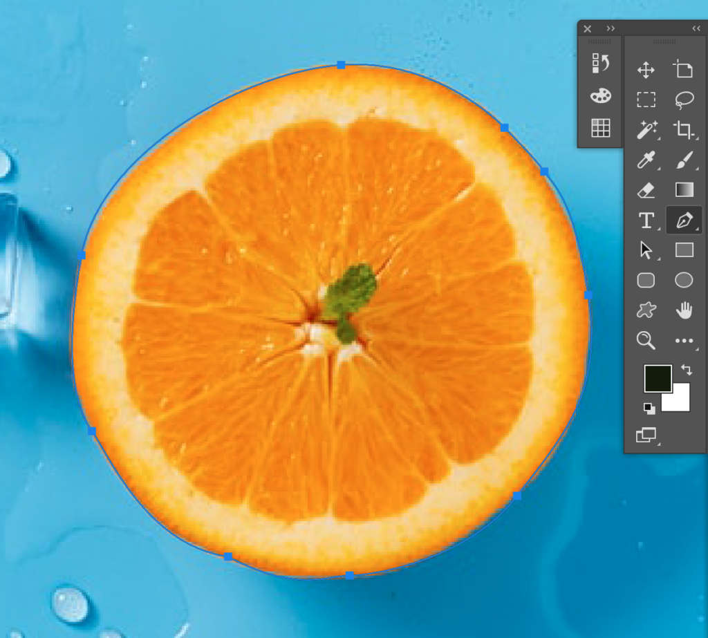 ショートカットキー『P』を押して、ペンツールで、真ん中のオレンジを囲います。