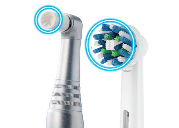 汎用電動ブラシとしては珍しい歯科クリーニング器具と同じ丸型ブラシを採用しており、他社製品とは全く構造が異なります。筆者も使用していましたが、よくある振動するだけの電動歯ブラシと異なり、磨き上がりがツルツルになるので驚きます。