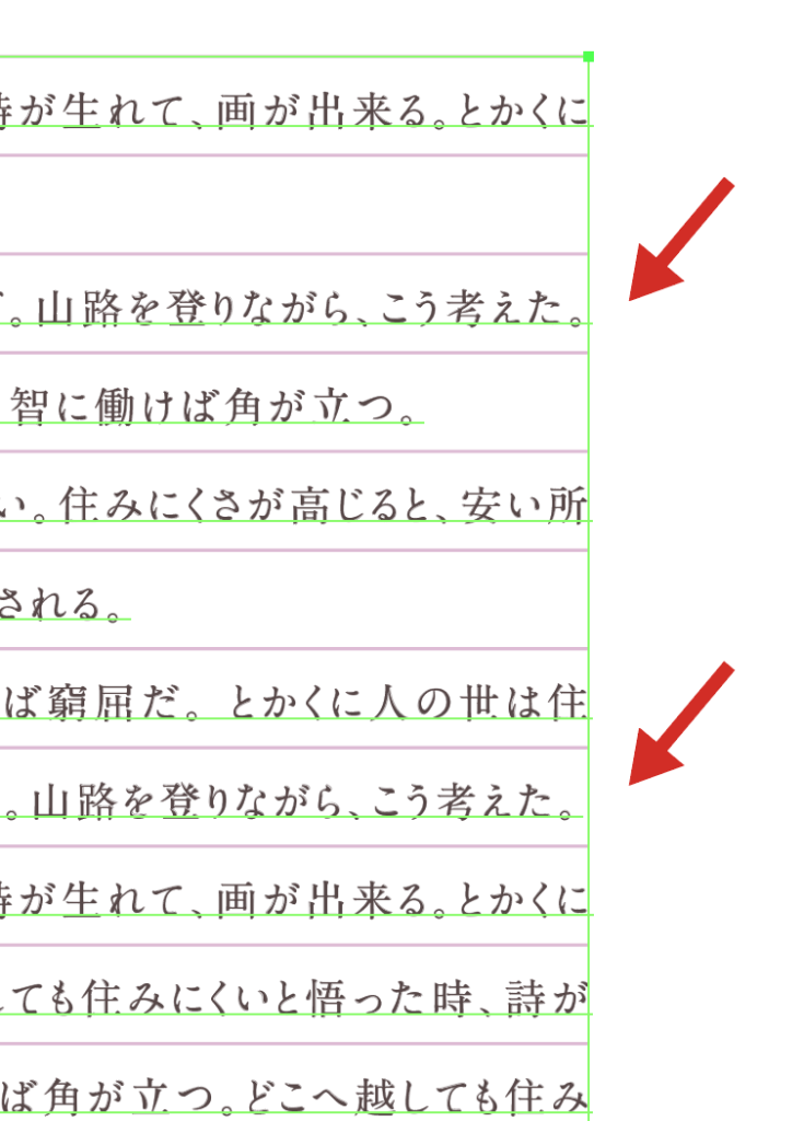 例えば以下のような例。手紙風のレイアウトを設定した際に、句読点だけがはみ出してしまった。