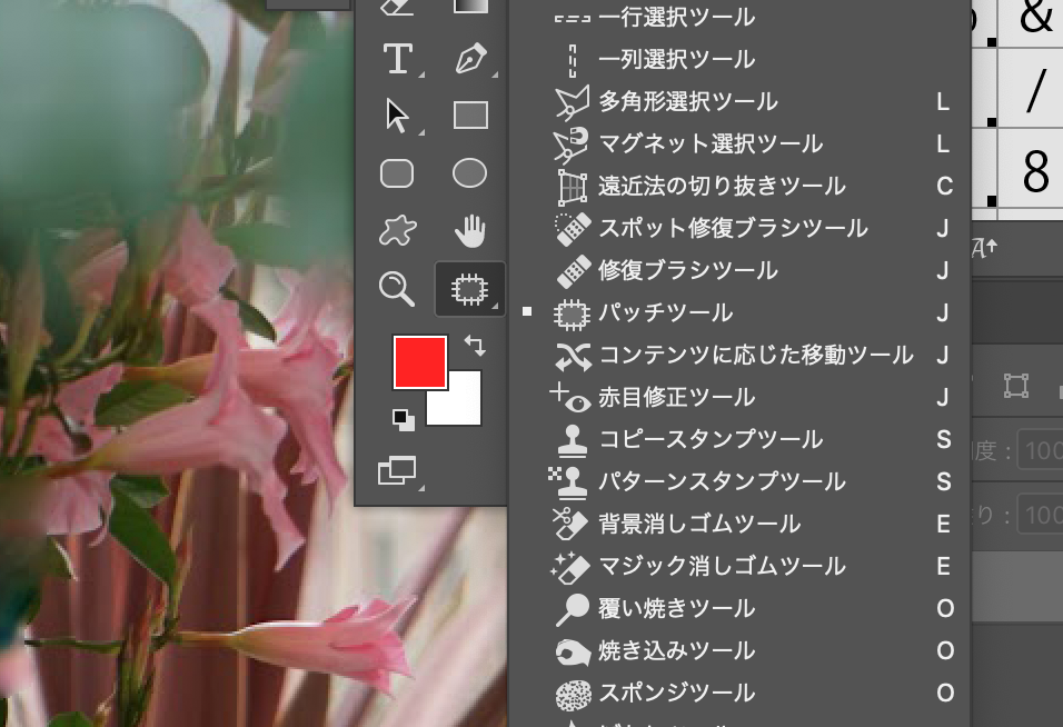 ツールバー右下の『・・・』をクリック。パッチツールを選択します。